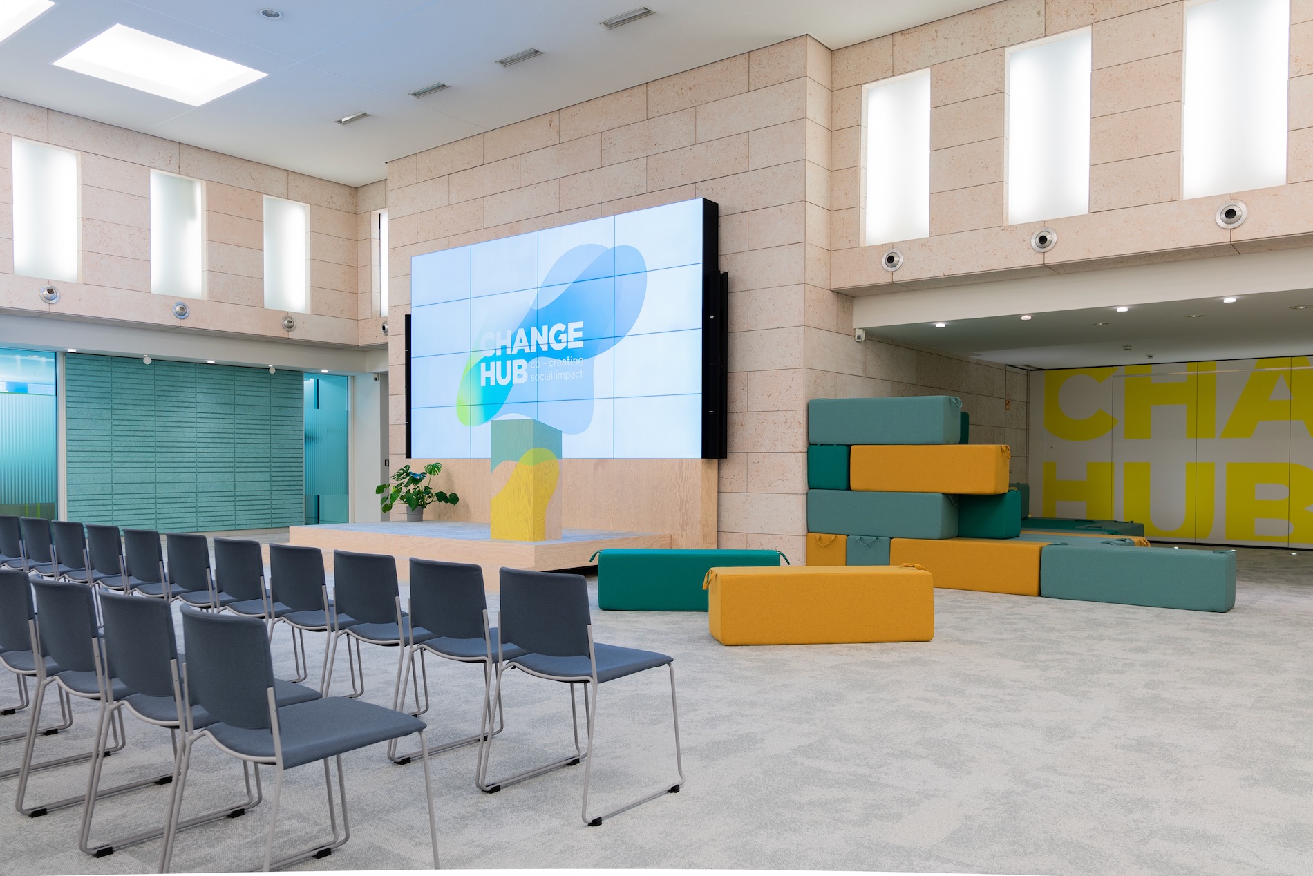Der ChangeHub bietet eine innovative und flexible Umgebung für Konferenzen, Workshops und Business-Events. Mit modernster Technik ausgestattet, ist dies der ideale Ort für kreative und interaktive Veranstaltungen.